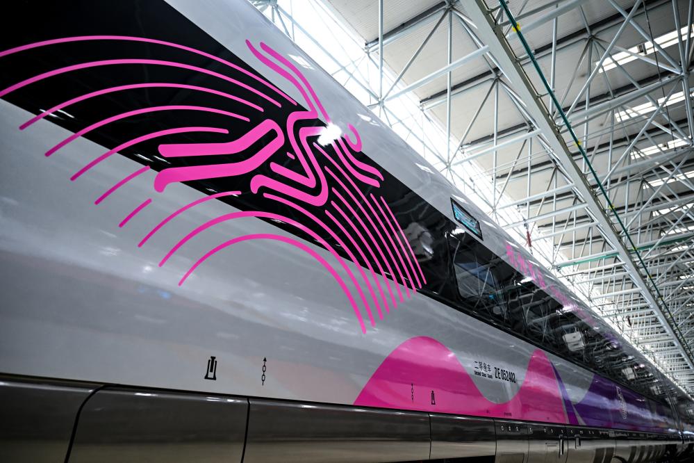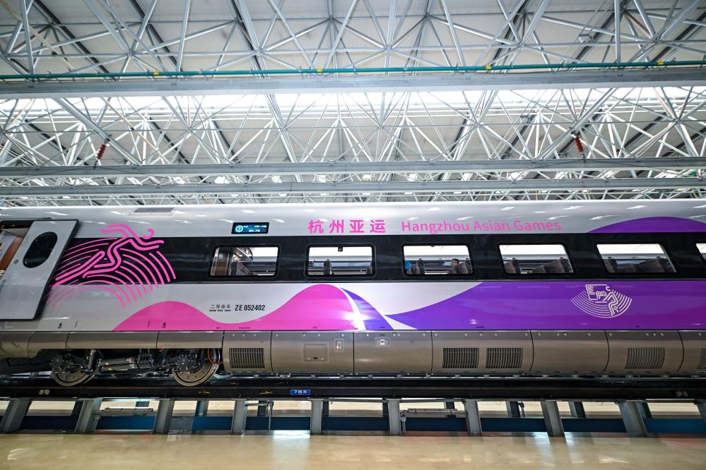 这是7月21日在中车长春轨道客车股份有限公司拍摄的复兴号亚运智能动车组外观。