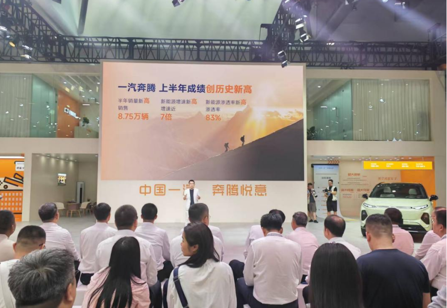 2025年上半年,一汽奔腾销量达8.75万辆,其中新能源车型销售7.25万辆,新能源同比增长近3倍,渗透率达83%,创造了“半年销量历史新高、新能源增速新高、新能源渗透率新高”的成绩,展现出高质量发展的潜能。
