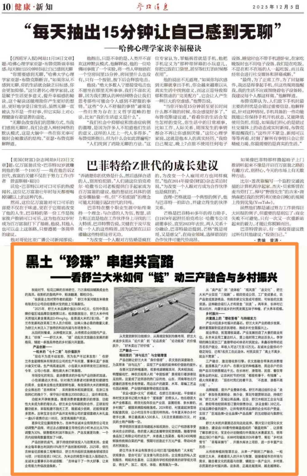 产业兴旺是乡村振兴的基石。舒兰大米产业的稳步发展,最终要落脚到促进农民增收、推动乡村全面振兴上。