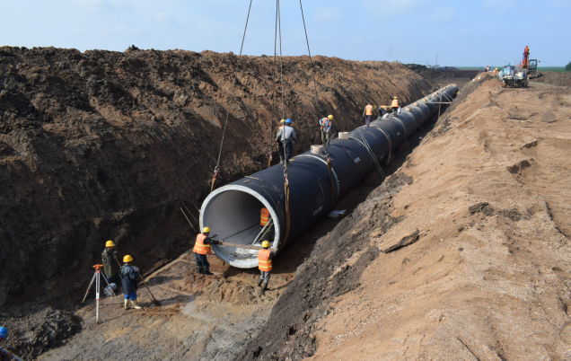 引松供水工程管道吊装铺设