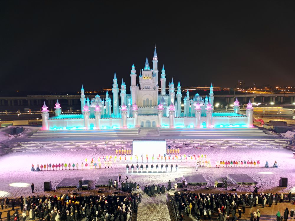 当晚,长春市全城33处地标同步点亮,冰雪走秀、城堡光影秀、烟花秀轮番上阵,见证冰雪与青春碰撞的高光时刻。在吉林市分会场,北山公园大东九龙冰场,充满活力的冰球表演凝聚城市力量,点燃全体市民的期盼与热情。