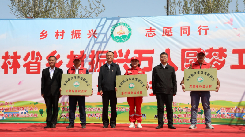 5月9日,吉林省“乡村振兴 万人圆梦”工程暨2023年吉林省乡村振兴志愿服务试点县(市)区启动大会在长春莲花山生态旅游度假区劝农山镇同心村举行。