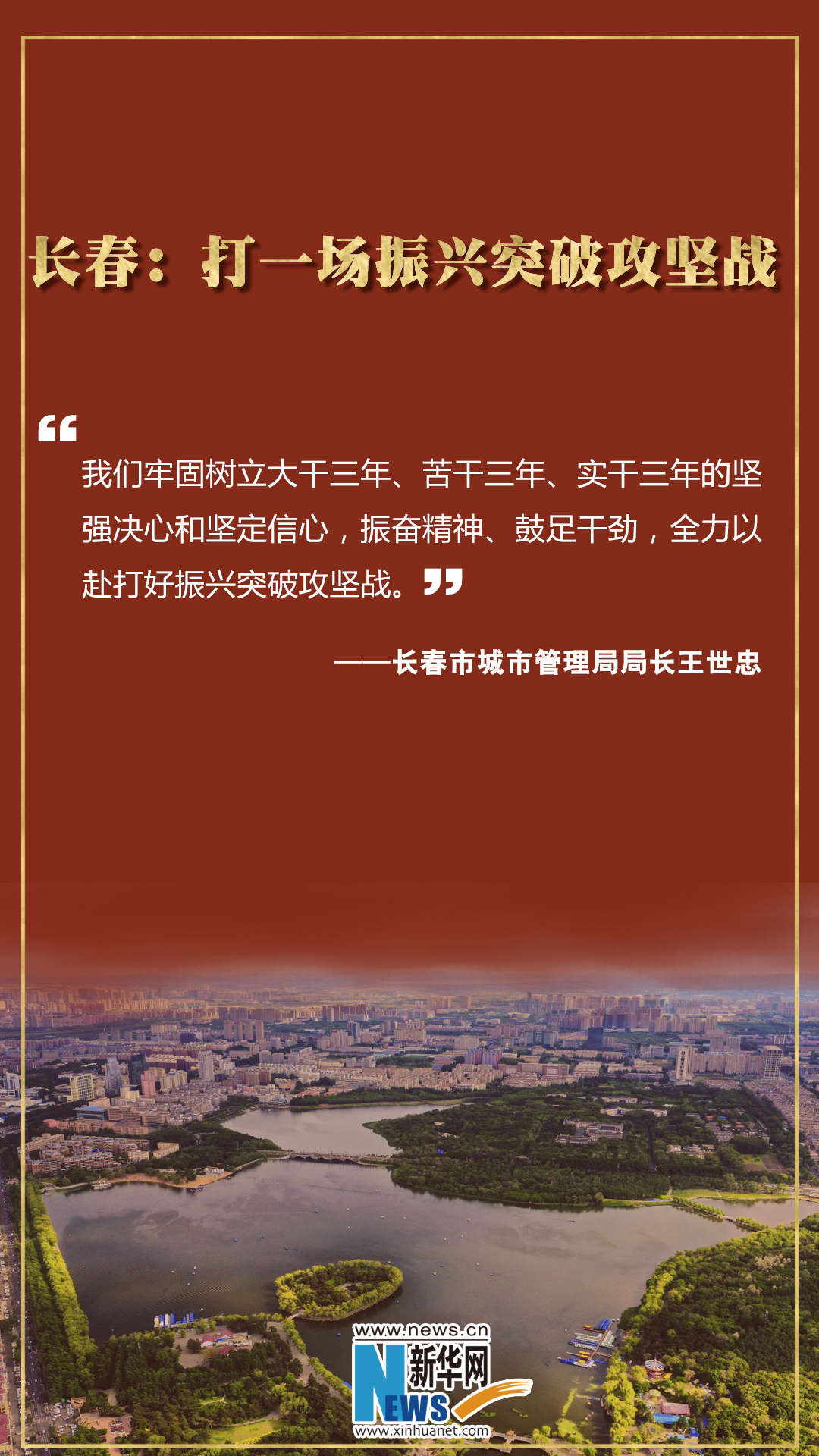 “我们牢固树立大干三年、苦干三年、实干三年的坚强决心和坚定信心,振奋精神、鼓足干劲,全力以赴打好振兴突破攻坚战。”长春市城市管理局局长王世忠说。