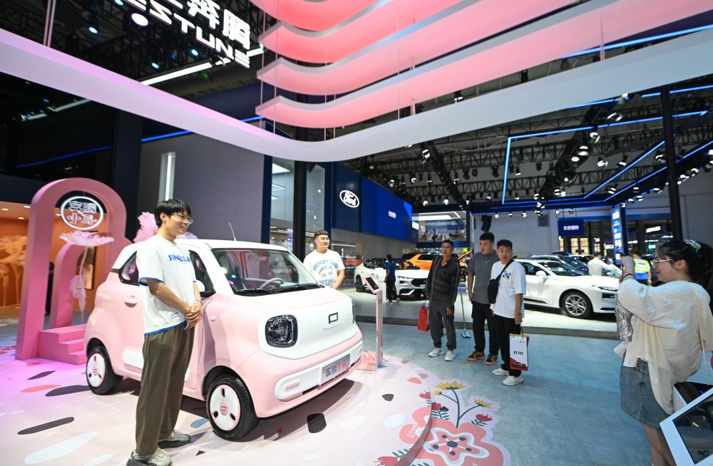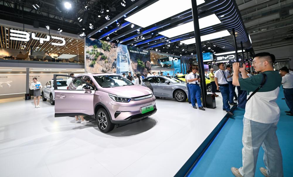 7月17日,观众在长春汽博会比亚迪品牌汽车展区参观。