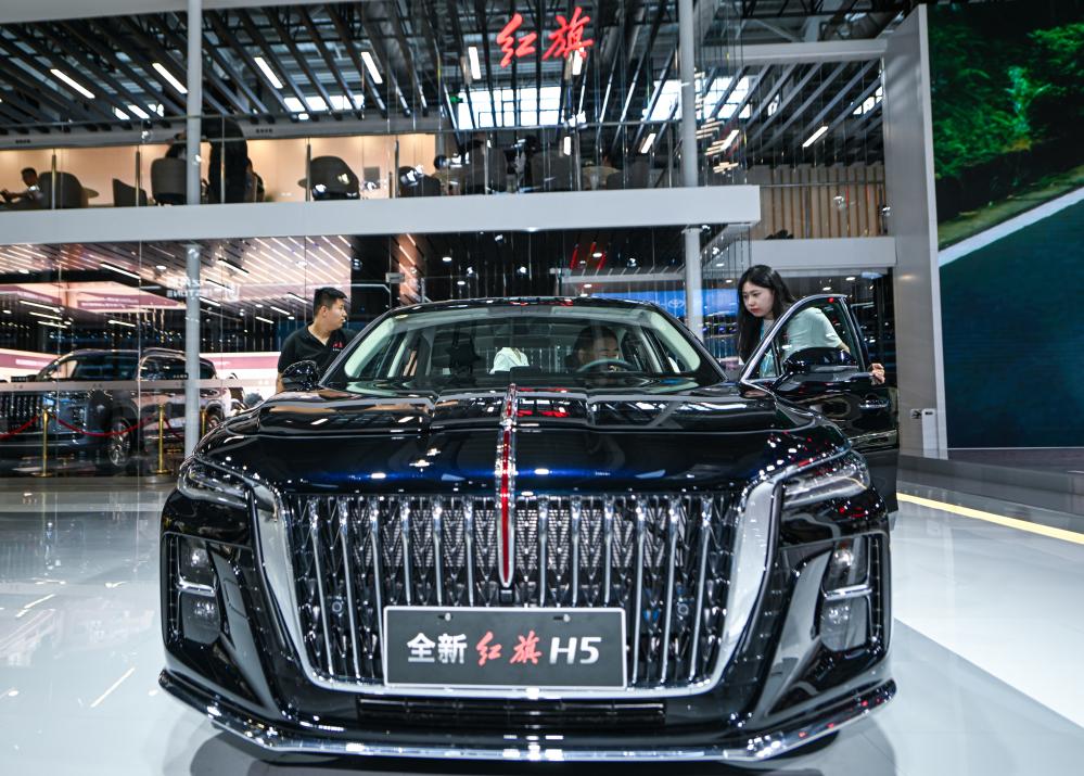7月17日,观众在长春汽博会红旗品牌汽车展区参观红旗H5车型。