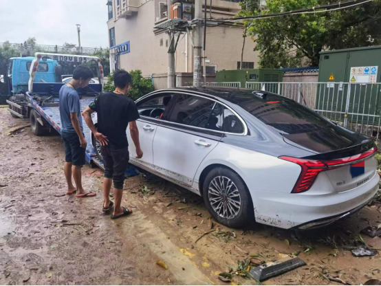 在此次台风灾害中,多家被洪水侵袭的红旗体验中心克服自身困难,坚持为用户做好服务,不仅从各地调配服务车及救援拖车,还组织员工组成救援小组,以便时刻响应用户的救援需求。