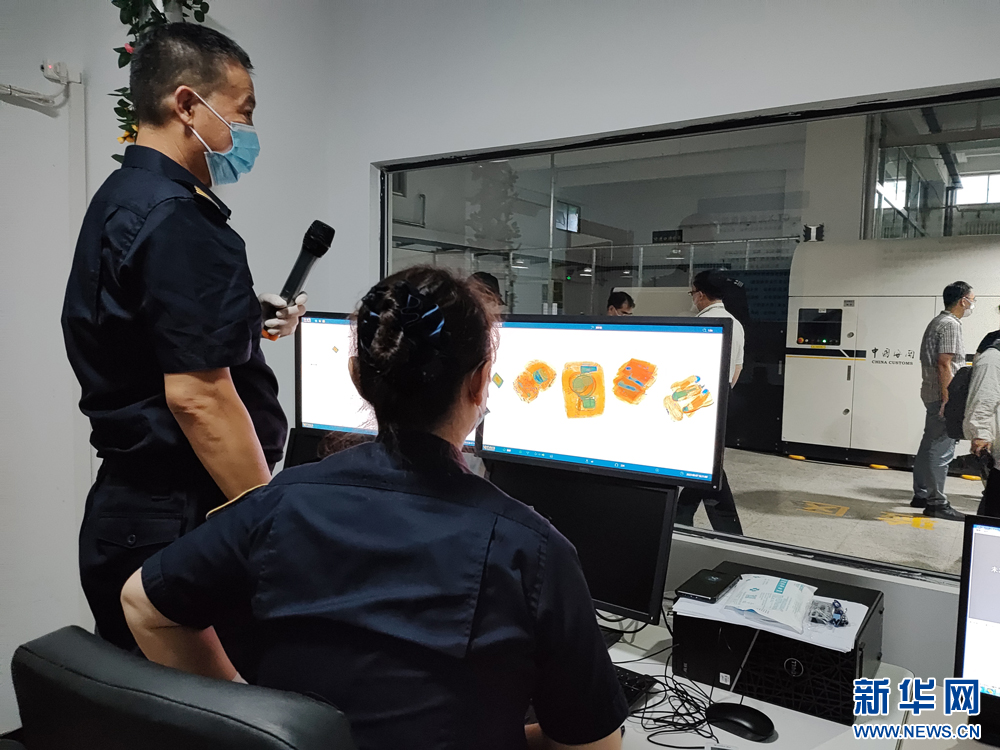 “崔姐”对不同色块进行识别,使“问题包裹”无处遁形。黄维摄/新华网发