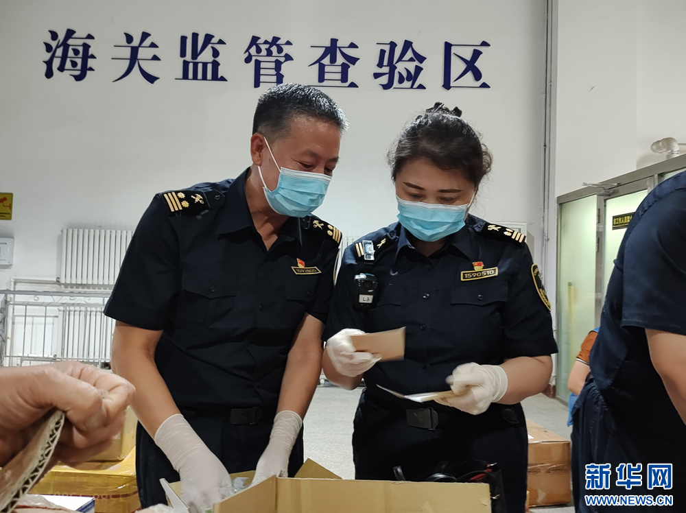 延吉海关关员在查验可疑包裹。 黄维摄/新华网发