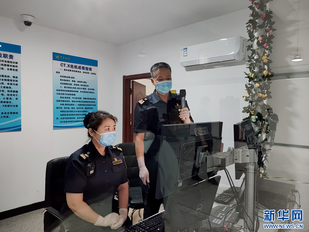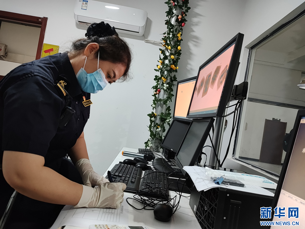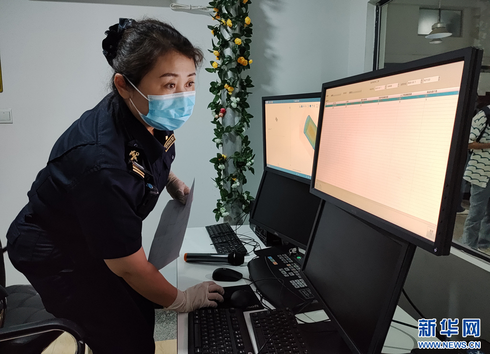 延吉海关邮局现场监管一科二级主办崔莲花紧盯CT图像,工作一丝不苟。 黄维摄/新华网发