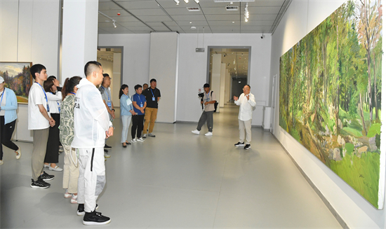 启动仪式结束后,在位于白山市河口画家村的河口美术馆,采访团参观了《新时代 新吉林·一山两江——中国油画名家写生邀请展》,通过中国油画名家笔下的一幅幅画作,近距离感受白山市青山绿水绕人家的美好生态画卷。