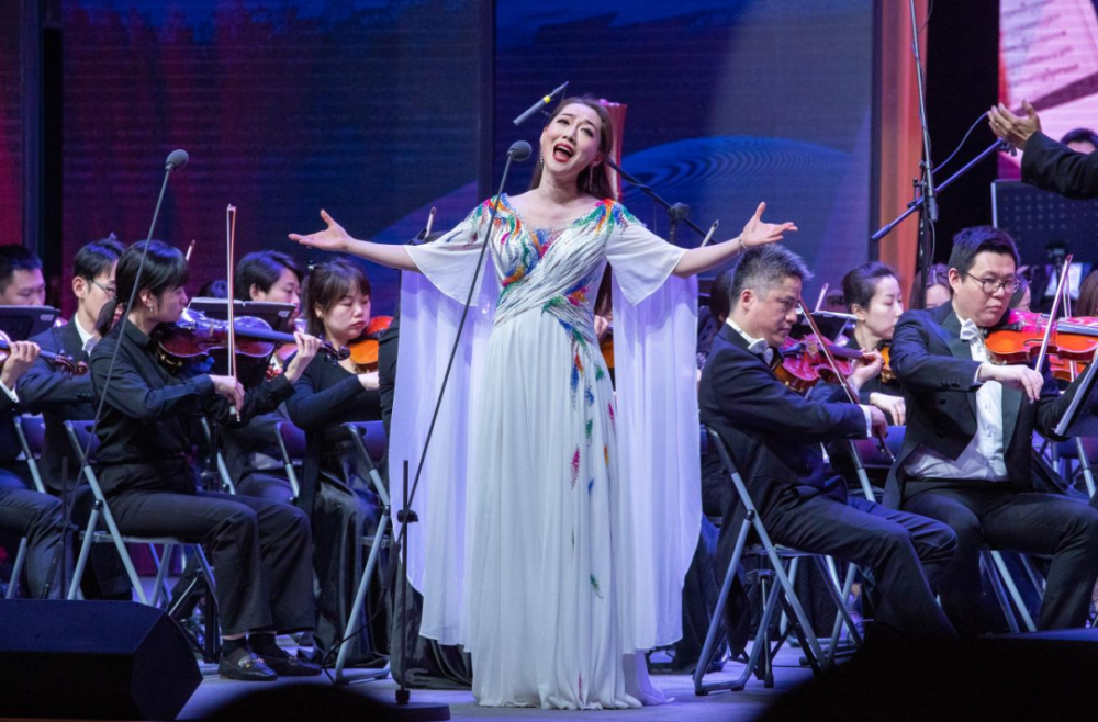 中央歌剧院女高音歌唱家郭橙橙在一汽“红旗之恋”音乐会上演唱(资料图)