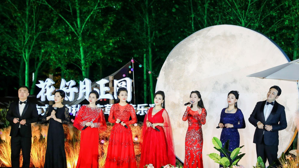 9月29日,中央歌剧院的歌唱家们在长春市“花好月正圆”中秋国庆草坪音乐汇上表演(长春市文化广播电视和旅游局供图)