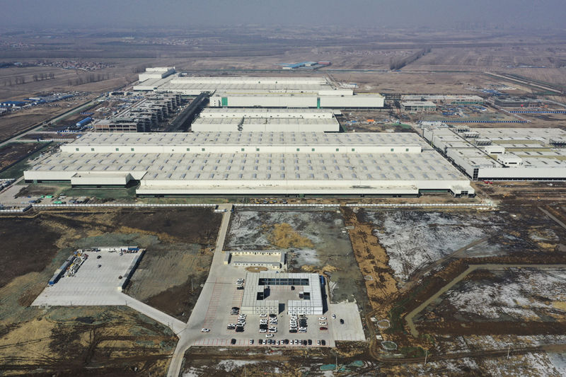 图为3月9日拍摄的奥迪一汽新能源汽车项目施工现场(无人机照片)(许畅 摄)