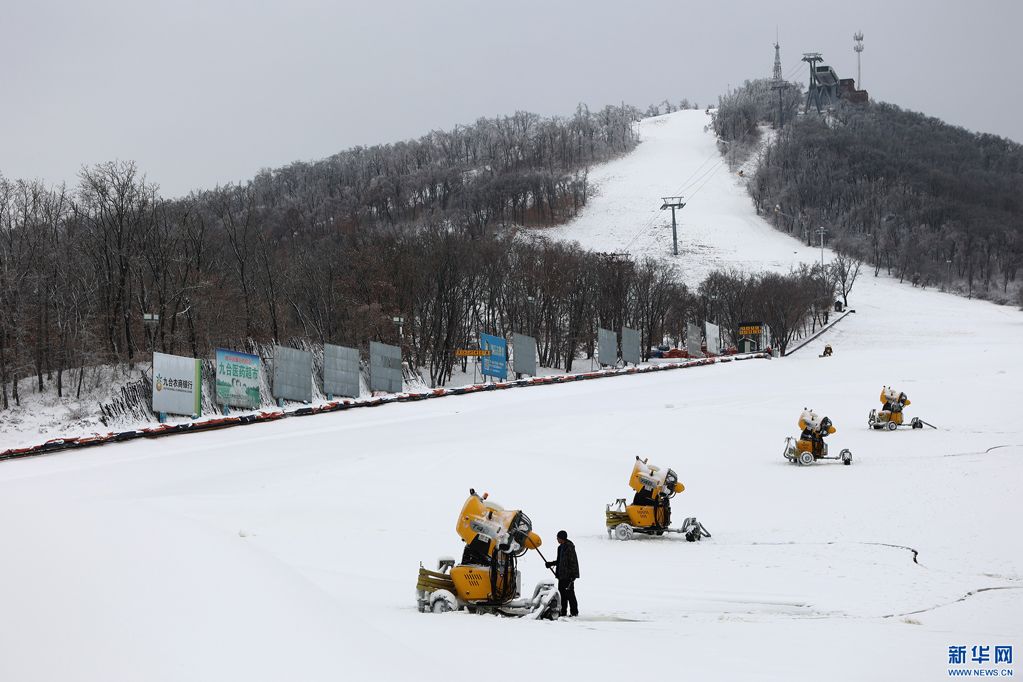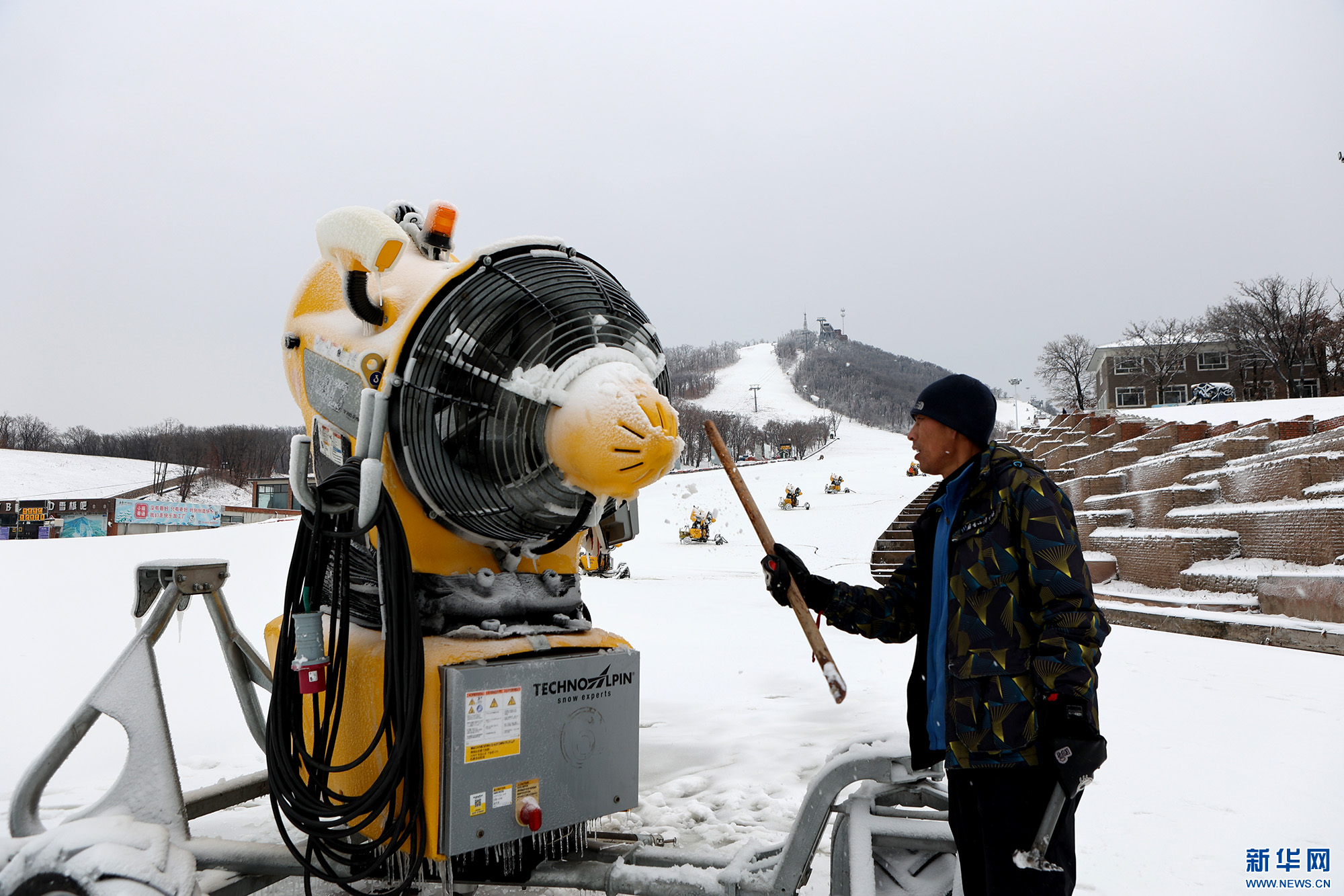 一名工作人员正在维护造雪设备。(邵守志 摄)