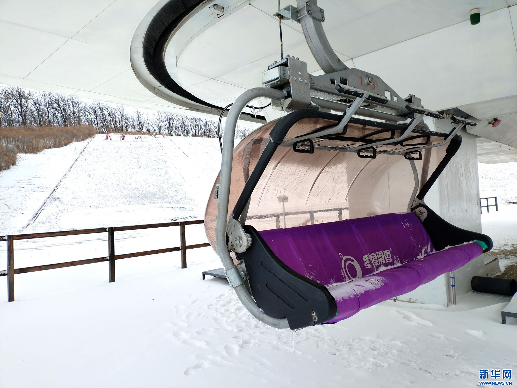 这是庙香山温泉滑雪场正在维护的缆车。(徐家军 摄)