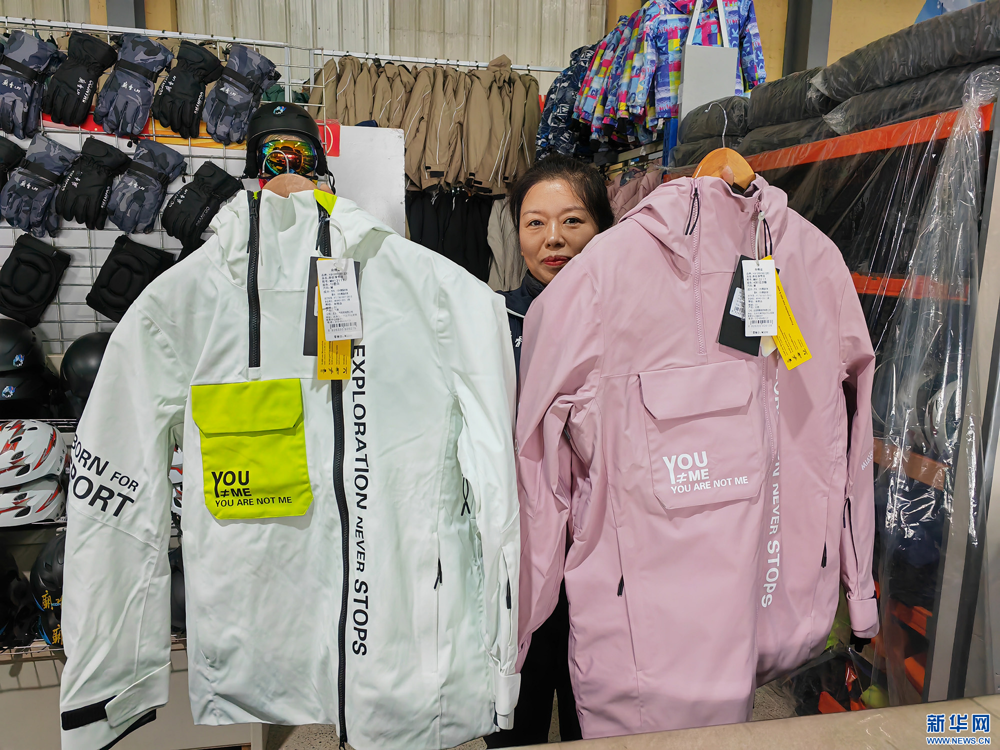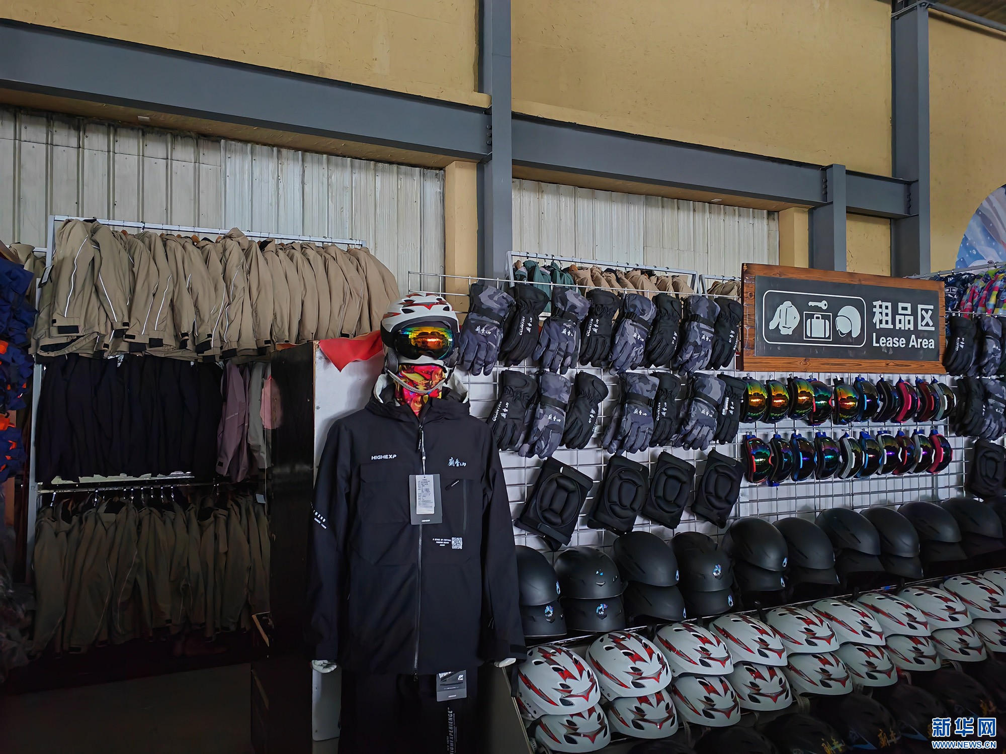 在游客中心摆放整齐的滑雪装备。(张建 摄)