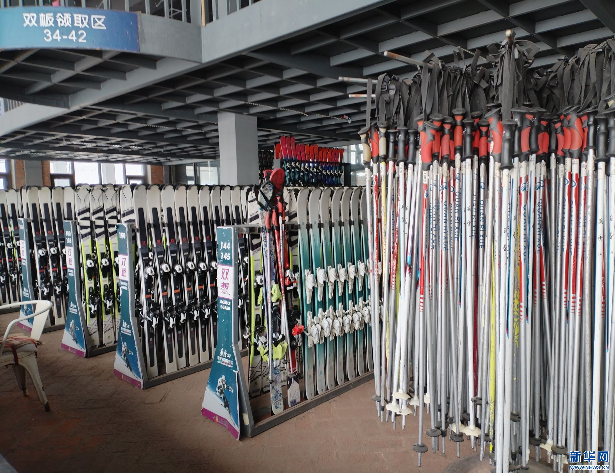 在游客中心摆放整齐的滑雪用具。(徐家军 摄)