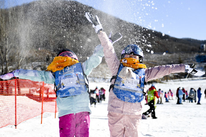 2023年1月15日,在吉林省吉林市,学生们利用寒假时光参加户外冰雪运动,尽享冰雪乐趣。新华社记者 许畅 摄