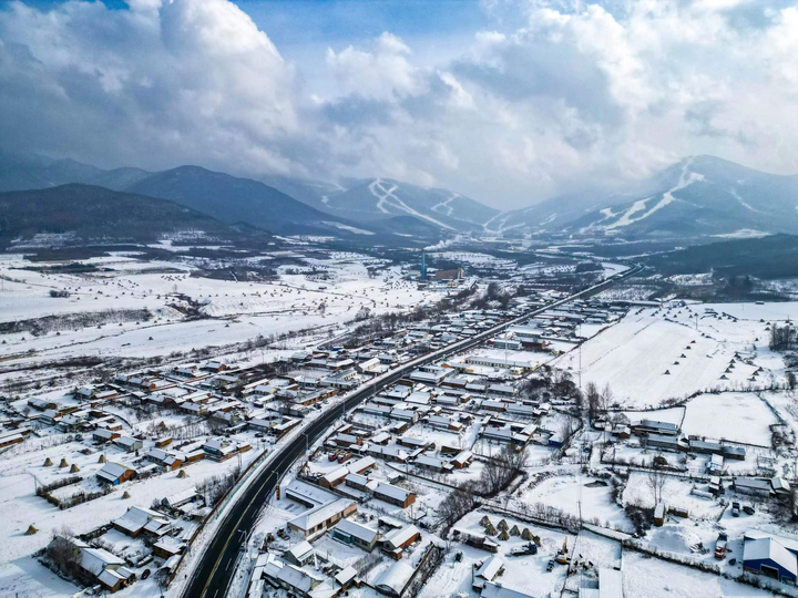 2023年1月19日,白雪覆盖的吉林市永吉县北大湖镇南沟村(无人机照片)。新华社记者 颜麟蕴 摄
