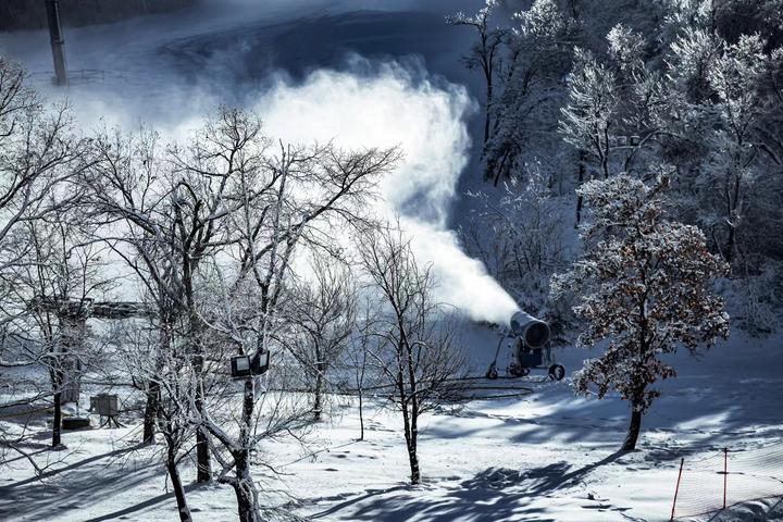 11月11日,长春市天定山、庙香山滑雪场开门营业。随着雪炮不停喷射出纷纷扬扬的雪花,吉林省内其他滑雪场也陆续“开板”。