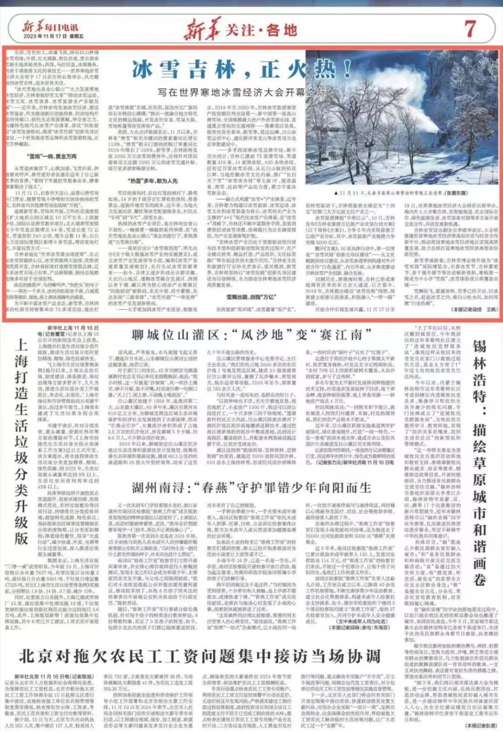 冰雪吉林正火热!新华每日电讯头条聚焦世界寒地冰雪经济大会