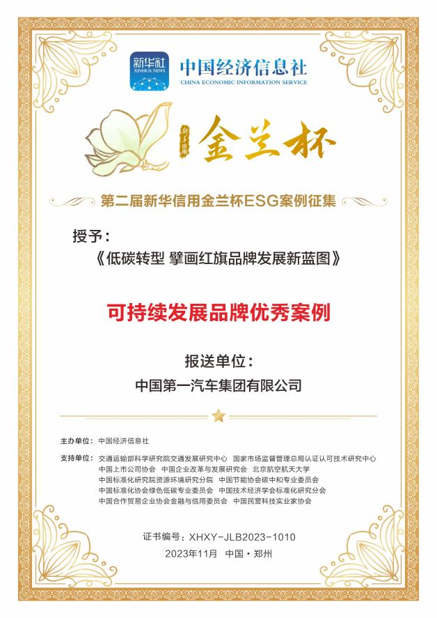 作为绿色发展理念的践行者和生态文明建设的贡献者,中国一汽立足汽车行业,从产品全生命周期出发,持续推进节能降碳工作,加快绿色低碳转型和高质量发展。