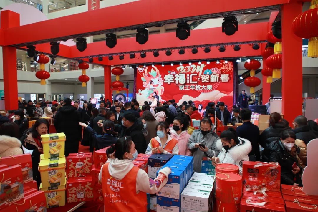 赶一场年货大集,体验春节烟火气息。2024年2月2日10时,由长春市总工会携手九台农商银行举办的“幸福汇·贺新春 长春市职工年货大集”活动在欧亚卖场大西洋厅开市!