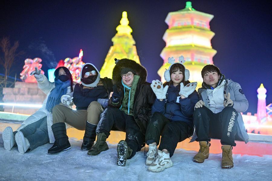 1月26日,游客在吉林长春冰雪新天地合影。新华社记者 陈晔华 摄