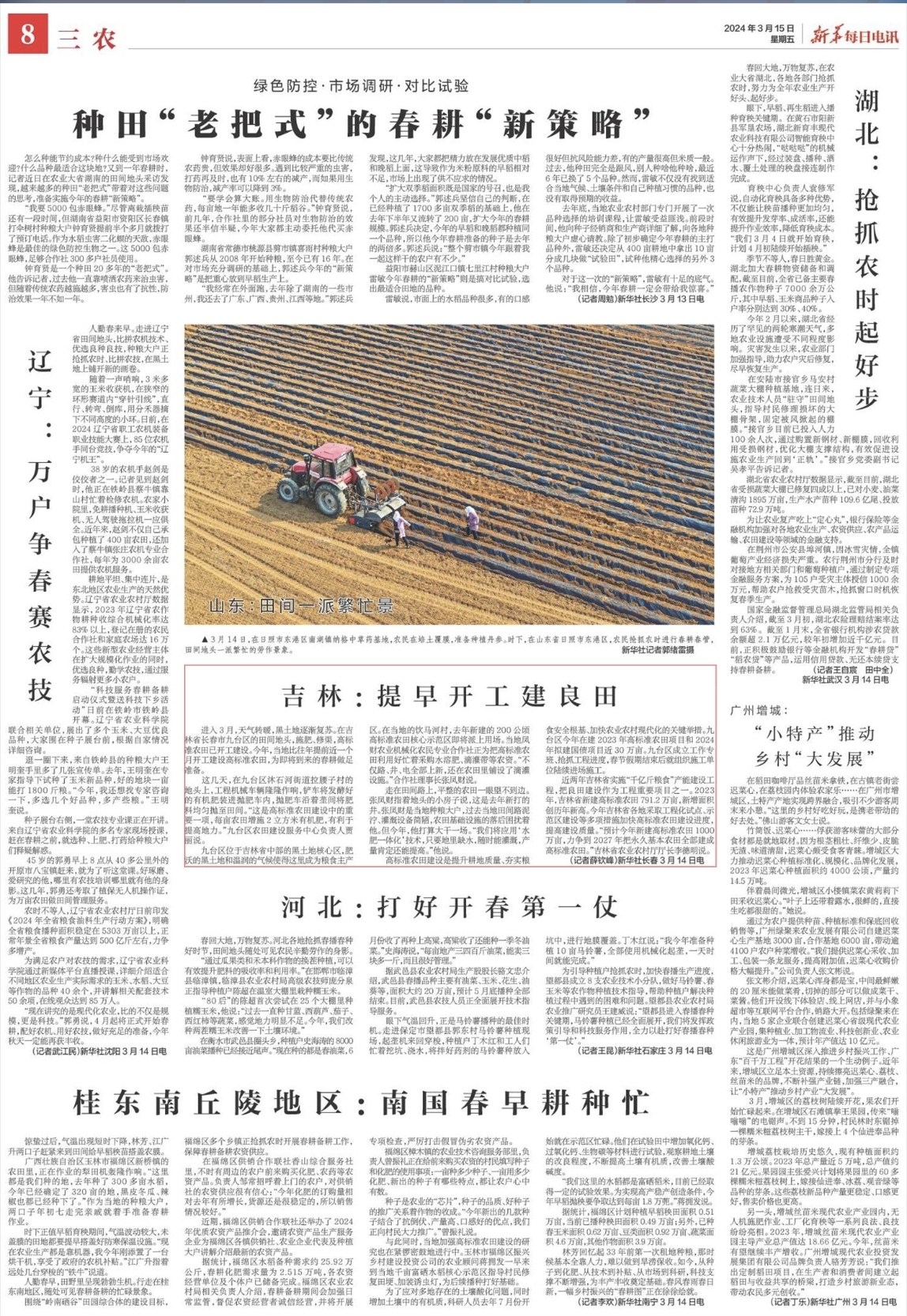 进入3月,天气转暖,黑土地逐渐复苏。在吉林省长春市九台区的田间地头,施肥、修渠,高标准农田已开工建设。今年,当地比往年提前近一个月开工建设高标准农田,为即将到来的春耕做足准备。