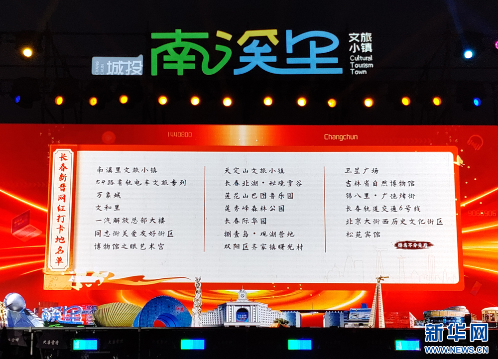 20个新晋网红打卡地中,我们可以在天定山文旅小镇、莲花山巴图鲁乐园、莲秀峰森林公园、长春际华园、捌壹岛·观湖营地、双阳区齐家镇曙光村、长春北湖·秘境雪谷、感受长春夏日22℃的凉爽、金灿灿的麦田、魅力冰雪的浪漫;还可以在南溪里文旅小镇、万象城、文和里、锦八里·广德烤街的文旅融合消费新场景,一站式打卡吃、喝、玩、乐、购的乐趣;乘坐54路有轨电车文旅专列听长春的故事,漫步同志街关爱友好街区感受城市的浪漫,跟随长春轨道交通6号线打卡“一连串”的网红打卡地;在一汽解放总部大楼、松苑宾馆、博物馆之眼艺术宫、吉林省自然博物馆、北京大街西历史文化街区中了解这座城市的文化气质;卫星广场滚动的环屏,一句句温馨的话语欢迎着每一位朋友。