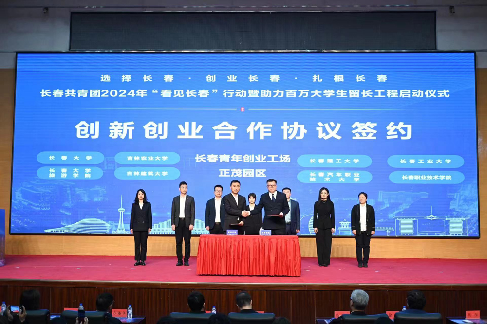 随后,长春青年创业工场正茂园区与在长8所高校签订创新创业合作协议,拉开了长春共青团2024年“看见长春”行动的序幕。