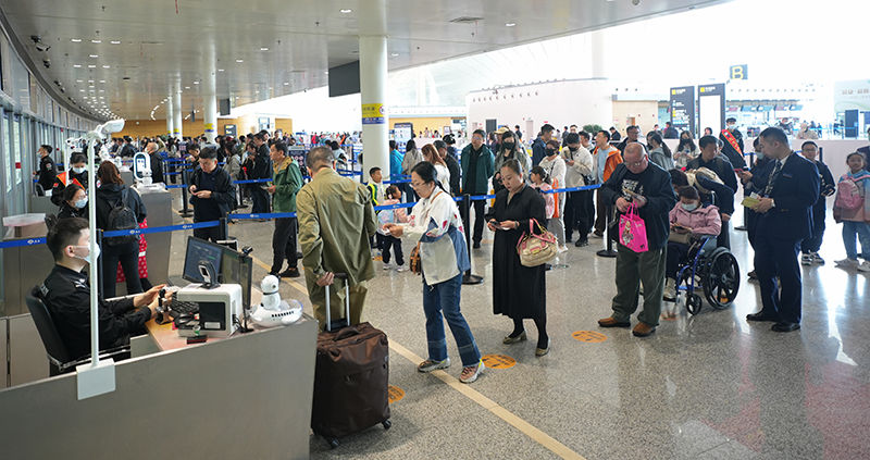 节日期间,长春机场根据节假日客流量、航班运行和现场情况,适时增开值机柜台及安检通道,缩短旅客排队等待时间。在旅客值机、安检、登机等服务环节增加流动服务岗,加强服务引导,及时为旅客提供问询服务。
