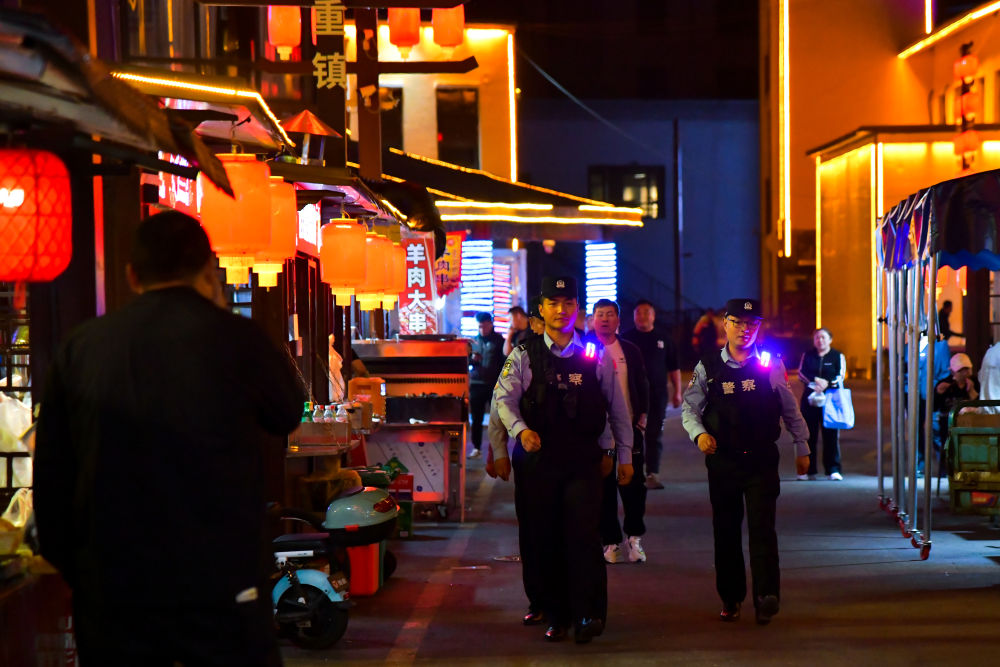 “我们立足辖区治安环境特点,及时调整优化勤务,采取定时+分段、车巡+步巡、定点值守+动中备勤的方式,对夜市、商圈等人员密集、治安环境复杂区域进行覆盖式、拉网式巡逻巡查,积极排查化解矛盾纠纷,全力营造和谐稳定的营商环境。”黎明边境派出所所长冯勇说。