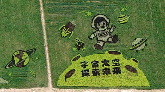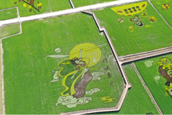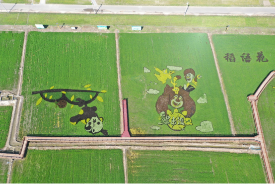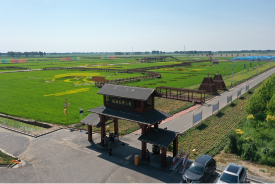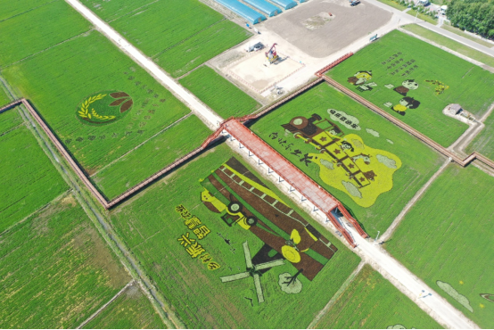 触目绿意盎然,稻田、麦浪、图画的组合美妙绝伦……松原市乾安县稻语花乡公园里的稻田画,画中有稻,田中有画。