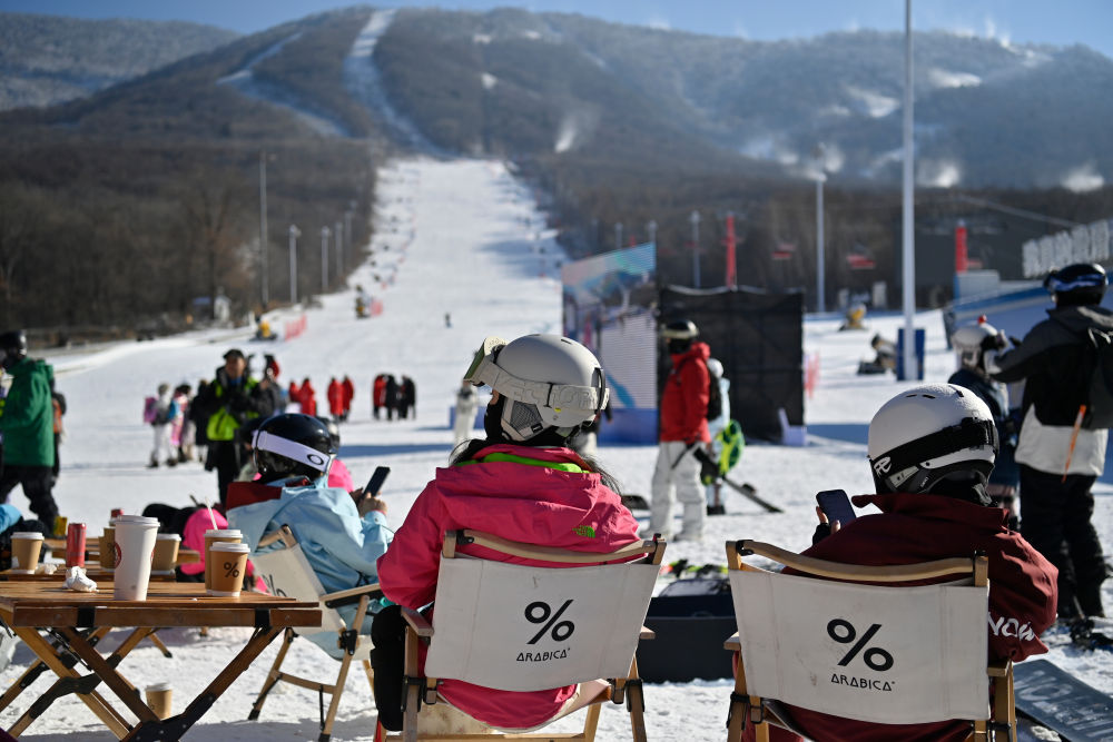 2024年11月23日,滑雪爱好者在吉林市北大湖滑雪度假区的休息区喝咖啡。新华社记者 颜麟蕴 摄
