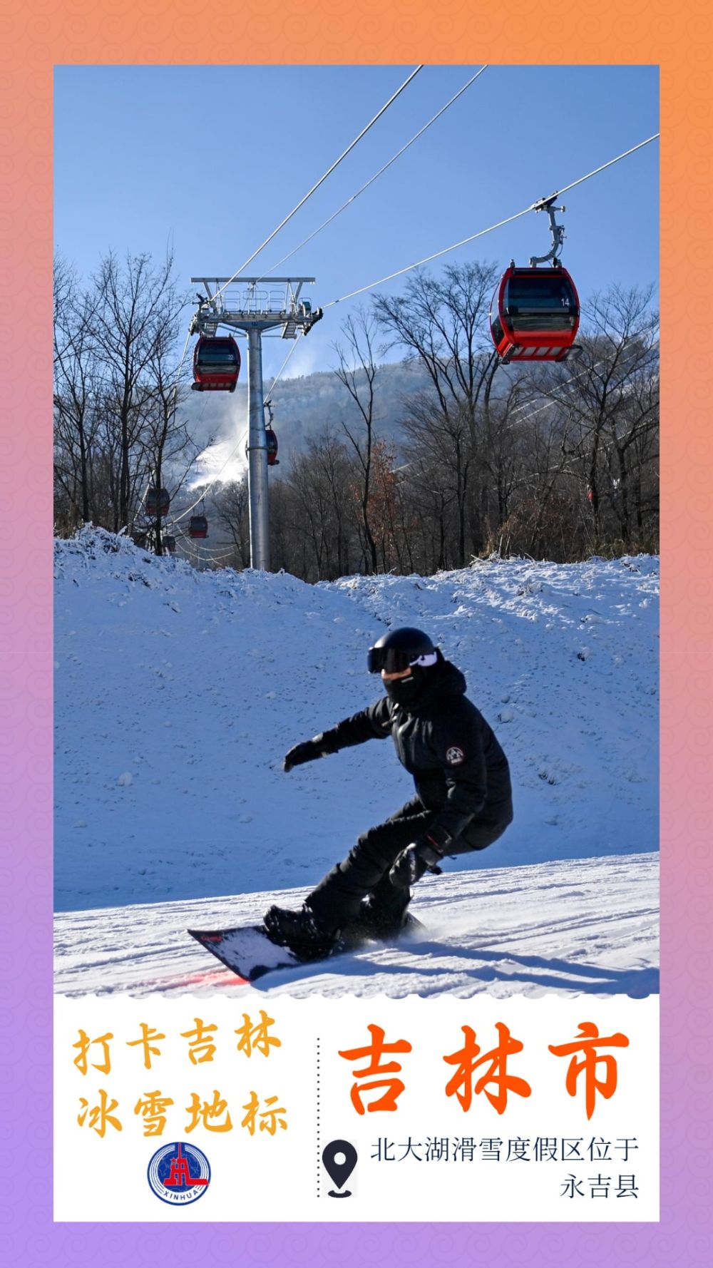 北大湖滑雪度假区位于吉林市永吉县,距吉林市区53公里,是国家4A级景区、国家级滑雪旅游度假地,被誉为“滑雪胜地、粉雪天堂”。