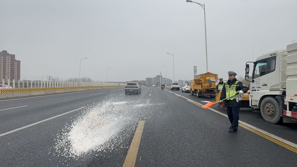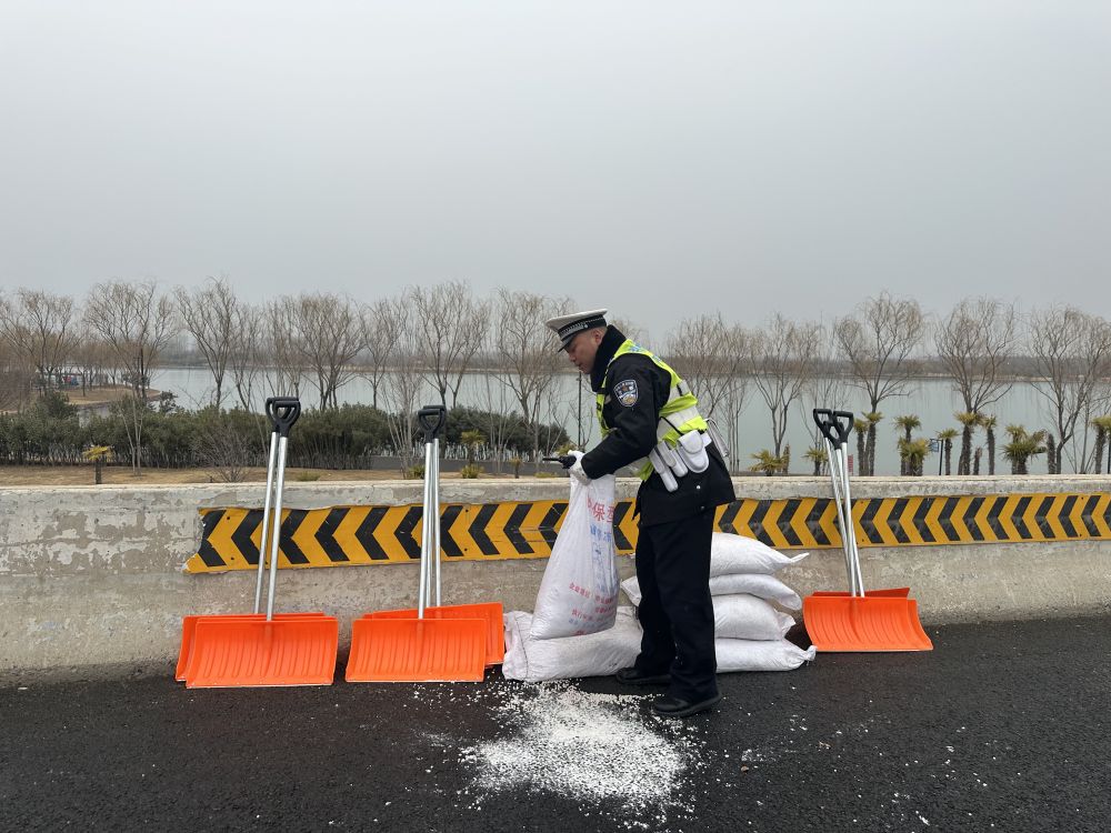 谢高杰说,“我们首先加强路面巡逻管控,排查道路交通隐患;第二,我们紧盯交通流量集中的路段、时段,通过远端控制、逐层分流等措施,确保道路畅通;第三,我们联合公路管养、市政部门做好联勤联动工作,针对易结冰桥梁路段囤积应急物资,以雨雪为号令展开行动,同时对道路上发生的交通事故,我们会采取快处快赔,远程视频处置等措施,做到快出警、快处置、快恢复。”