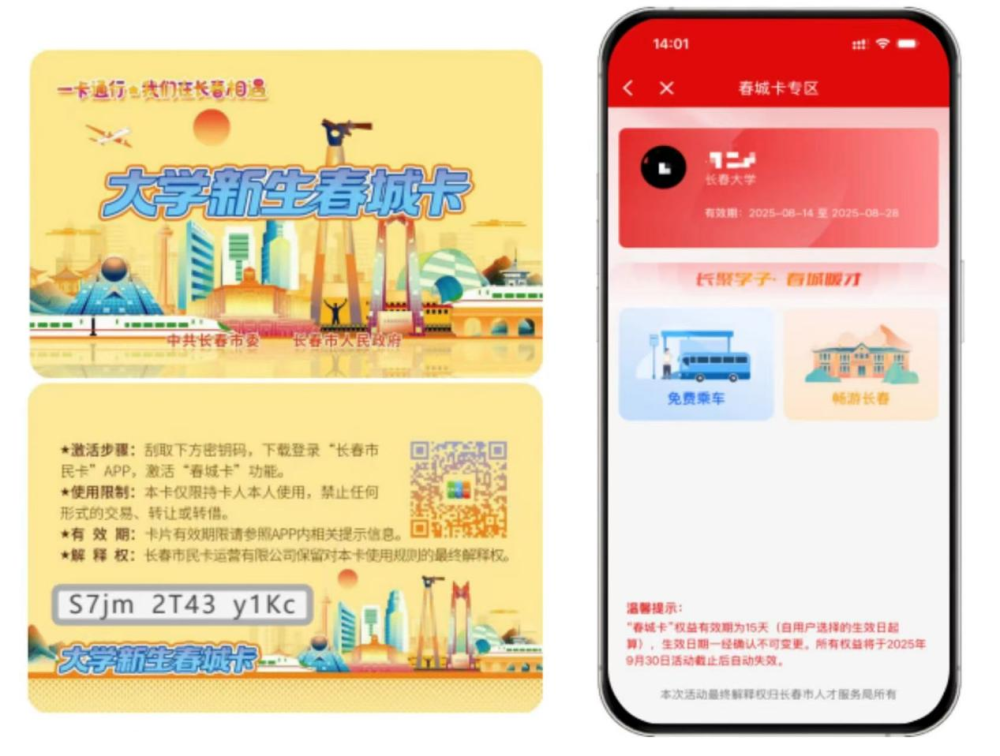 “春城卡”是长春市推出的2025年“长聚学子·春城暖才”系列活动之一,旨在吸引更多青年学子来到长春、了解长春、爱上长春、留在长春,为长春的高质量发展注入青春动能。今年以来,长春市通过市级领导进校园、“万名学子游长春”“先生向北,青春聚长”主题活动等系列活动,让大学生真切感受到长春的友好和城市的温度。