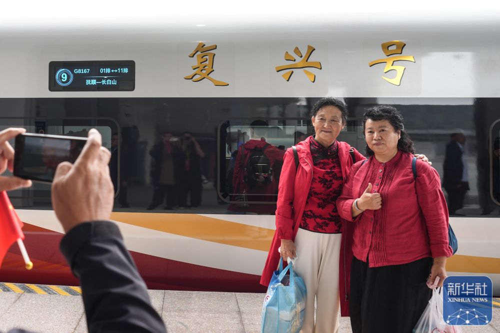 ↑ 9月28日,从抚顺站开往长白山站的G8167次列车驶出抚顺站。新华社记者 潘昱龙 摄