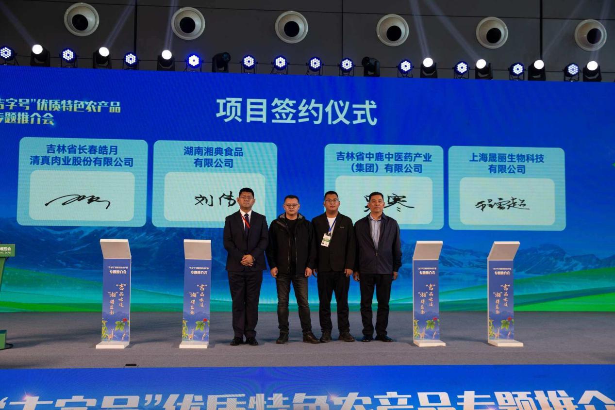 在11月14日的“吉字号”农产品专题推介会上,吉林省中鹿中医药产业(集团)有限公司和吉林省长春皓月清真肉业股份有限公司作为企业代表进行了现场推介。与会期间,他们分别与上海晟丽生物科技有限公司和湖南湘典食品有限公司达成了500万元和100万元的采购协议。