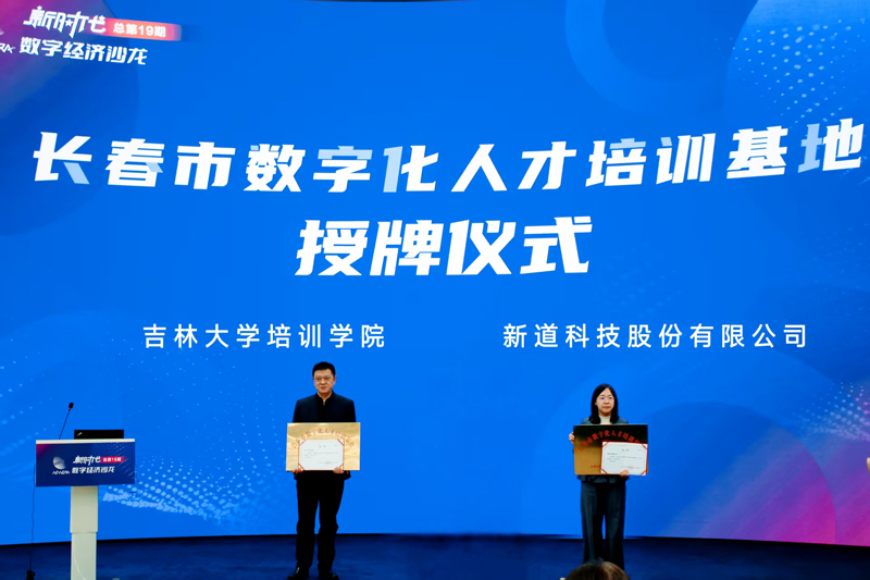 活动期间,长春市政务服务和数字化建设管理局还为吉林大学培训学院、新道科技股份有限公司2家数字化人才培养基地进行了授牌。