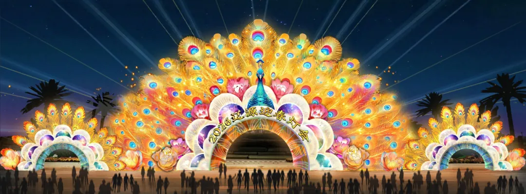 2026年辽源市动植物园迎春灯会50米巨型孔雀门效果图