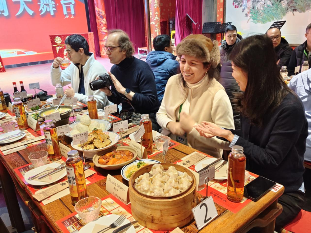 屋外是北国的寒冬,屋内却是另一番热闹景象——外国记者、网络达人们围坐桌前,品尝特色蒸饺,采风团成员们对这“中国味道”连连称赞。