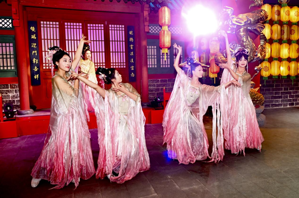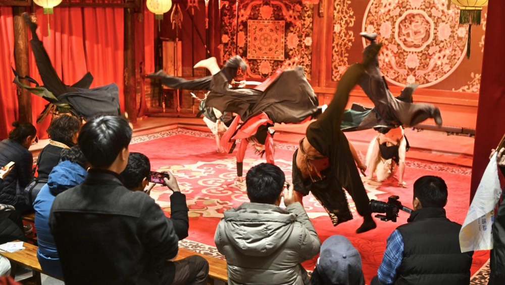 长白山·金1172情景式金代主题演艺城的演员们在进行表演