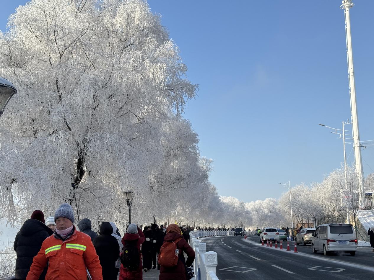 “在南方从来没见过这样的景象!”来自广州的游客陈先生激动地举着相机不断拍摄,“不仅树挂壮观,整个‘夜看雾,晨看挂,待到近午赏落花’的过程都充满了诗意,像走进了冰雪童话。”