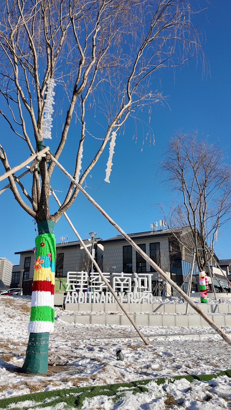湖北游客刘箐看后深有感触地说:“这些树木‘穿’上毛衣太萌了,孩子很喜欢这个创意,不停地和大树合影。”