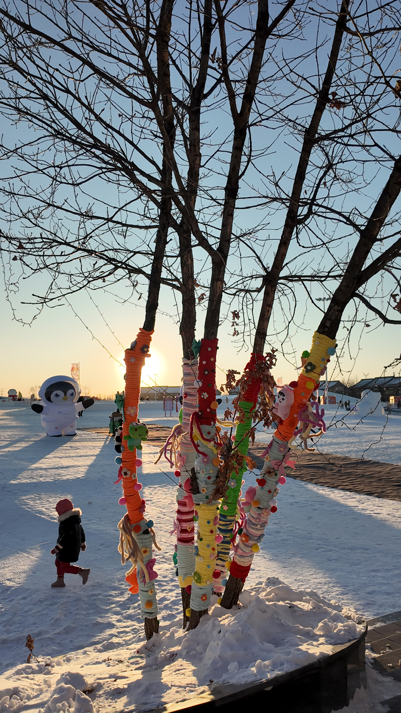 据悉,这次主题为“长春织梦,彩装映雪”的活动,是长春冬季冰雪旅游发力的又一举措。这几处景点作为全市重点文旅风景区域,树木造型奇特,此次在专业人员的设计下,部分树木“穿”上色泽鲜艳、造型可爱的毛衣,让大树显出别样的生机。