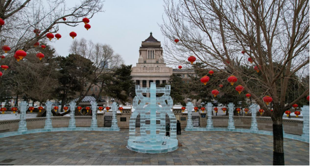 ★长春市民于女士感慨:“我从小在这条街附近长大,今年看到满街的冰雕雪景,沿新民大街行道树上还挂着红灯笼,过年的氛围一下子就浓了!”