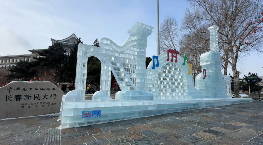 一步一景皆惊喜。文化广场上复刻天坛的冰雕晶莹剔透,街角“东北抗联精神”主题冰雕庄重肃穆,吉林大学基础医学院门前的“长春春常在”冰雕尽显温情……