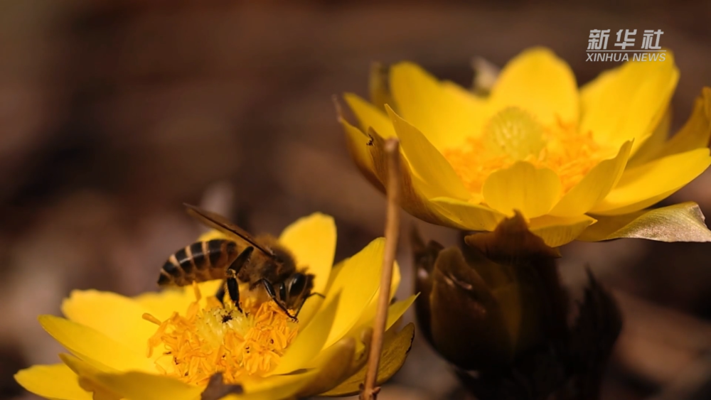 金黄色的冰凌花正破土而出,在冰雪间悄然绽放,成为山野间一道亮丽的风景线。